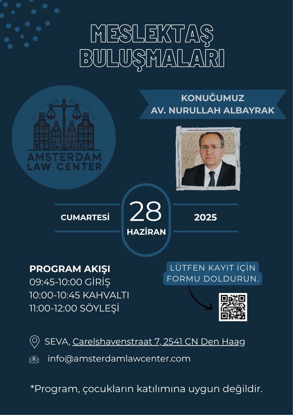 28 Haziran 2025 Cumartesi günü Av.Nurullah Albayrak’ın konuşmacı olduğu söyleşimize tüm meslektaşlarımızı bekleriz. Katılım durumunuzu QR kodunu kullanarak bildirebilirsiniz.